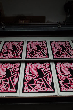 Hand pulled Screen Print with Glow in the Dark and signed by the artist.